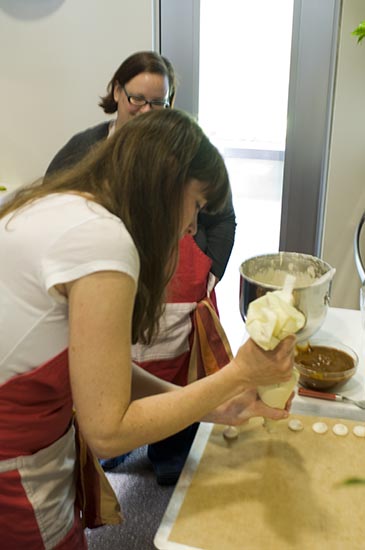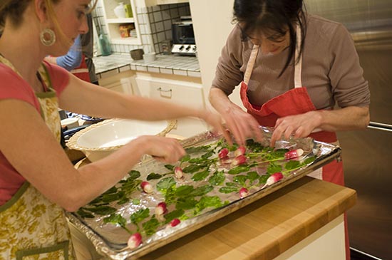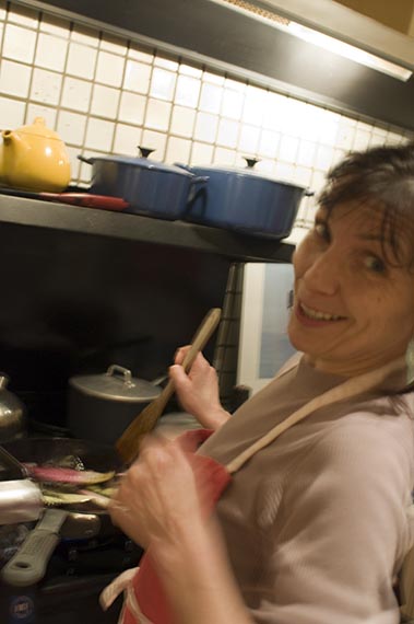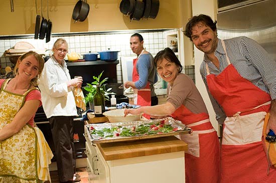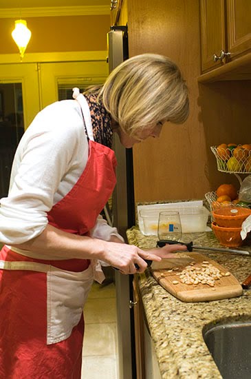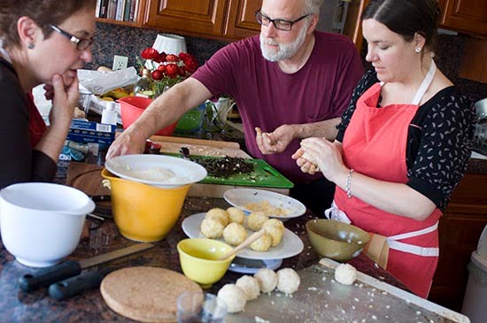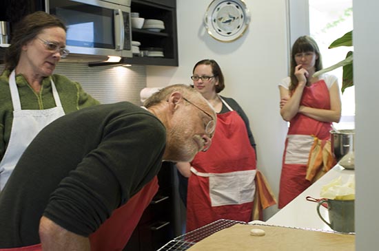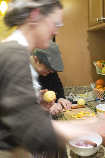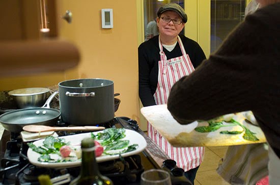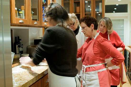 Of course I'd planned on photographing the whole hullabaloo, but rapidly realized that I couldn't both swirl a spoon and click the camera at the same time... So my thanks to Wenn Murphy, faithful assistant that she was, for snapping away in between washing dishes and opening wine bottles. (Scroll down below the recipe to see a bit of her handiwork.)