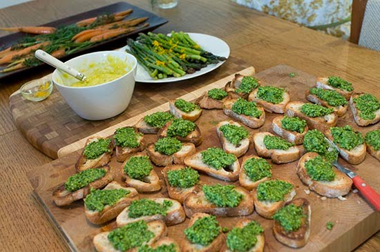 ROASTED RADiSHES : CiLANTRO-PESTO BRUSCHETTA