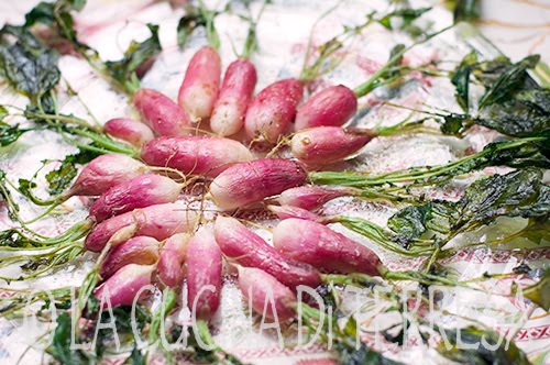500 gr red and white radishes (tops removed), remove from refrigerator just before using